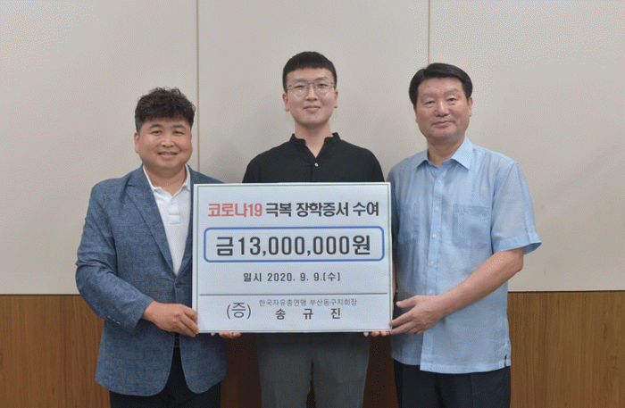 Çѱ¹ÀÚÀ¯ÃÑ¿¬¸Í ºÎ»êµ¿±¸Áöȸ ¼Û±ÔÁø ȸÀå, Äڷγª19 ±Øº¹ ÀåÇÐ±Ý Àü´Þ