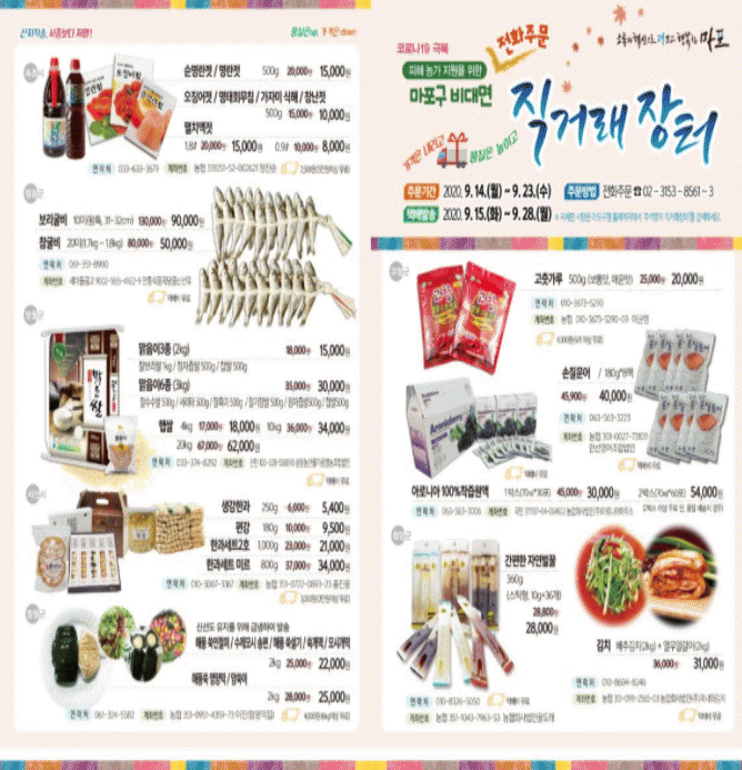 ¸Å³â ¸¶Æ÷±¸´Â ¸íÀýÀ» ¾ÕµÎ°í ¿ì¼öÇÑ Ç°ÁúÀÇ ±¹³»»ê ³ó¡¤Æ¯»ê¹°À» ±¸¹ÎµéÀÌ ½±°Ô ±¸¸ÅÇÒ ¼ö ÀÖµµ·Ï ¸¶Æ÷±¸Ã» ±¤Àå¿¡¼ Á÷°Å·¡ÀåÅ͸¦ ÁøÇàÇß´Ù. ±×·¯³ª ¿ÃÇØ´Â ½ÅÁ¾ Äڷγª¹ÙÀÌ·¯½º °¨¿°Áõ(Äڷγª19)ÀÇ ¿µÇâÀ¸·Î ºñ´ë¸é ¹æ½ÄÀ¸·Î Á÷°Å·¡ÀåÅ͸¦ ÁøÇàÇÑ´Ù.