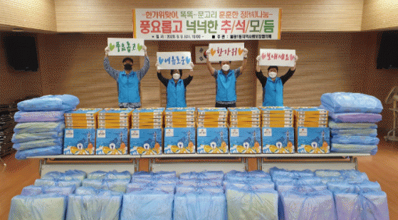 À̹ø Çà»ç´Â Äڷγª19 ´ëÀÀ »çȸÀû °Å¸®µÎ±â°¡ °ÈµÇ¾î »ýȰ¿¡ ¾î·Á¿òÀ» °Þ°í ÀÖ´Â Àú¼ÒµæÃþ¿¡°Ô ´Ù°¡¿À´Â ¸íÀýÀÌ Èñ¸ÁÀÌ µÉ ¼ö ÀÖµµ·Ï Ãß¼®¸ðµë ¼¼Æ® 90°³¸¦ ¸¸µé¾ú´Ù. Ãß¼®¸ðµë ¼¼Æ® ¹°Ç°À¸·Î ¡°°¡À»À̺Ò, ÂüÄ¡¼¼Æ®, ¸é¸¶½ºÅ©¡±¸¦ ÁغñÇÏ¿´°í, ¼Õ¼¼Á¤Á¦, À§»ýÀå°©À» »ç¿ëÇÏ´Â µî ¹æ¿ª¿¡ ³ë·ÂÇϰí Á¶½ÉÇÏ¿© ºñ´ë¸éÀ¸·Î Çö°ü ¹®°í¸®¿¡ °É¾îµÎ´Â ¹æ½ÄÀ¸·Î Àü´ÞÇÏ¿© Äڷγª19 °¨¿° ¹æÁö¿¡ ¸¸ÀüÀ» ±âÇÏ¿´´Ù.