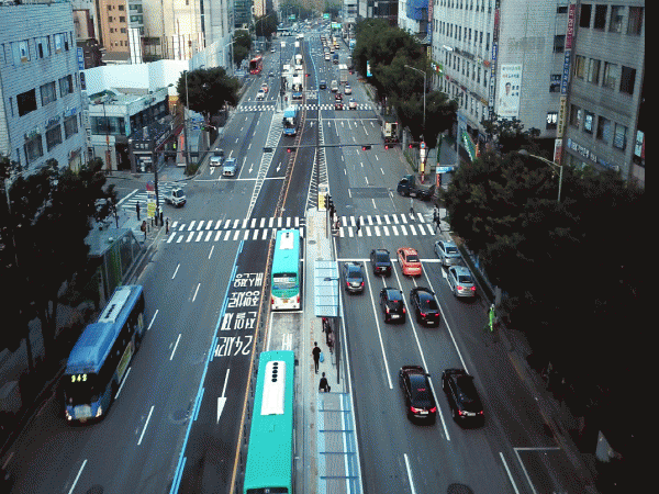 ÇÑÆí, BRT °³ÅëÀ¸·Î ¹ö½º ³ë¼±º° Á¤·ù¼Ò À§Ä¡°¡ º¯°æµÇ°í ±³Åëü°è°¡ ÀϺΠ´Þ¶óÁ® È®ÀÎÀÌ ÇÊ¿äÇÏ´Ù. ´ëºÎºÐ ¹ö½º´Â Áß¾ÓÁ¤·ù¼Ò¿¡ Á¤Â÷ÇÏÁö¸¸, °µ¿±¸Ã»¿¡¼ °µ¿¿ª ¹æÇâÀ¸·Î ¿ìȸÀüÇÏ´Â ³ë¼±µéÀº °¡·Îº¯ Á¤·ù¼Ò¿¡ Á¤Â÷ÇÑ´Ù. BRT ¼³Ä¡·Î ÀÏ¹Ý Â÷·®ÀÌ ¸Ö¸® µ¹¾Æ°¡´Â ºÒÆíÀ» ÁÙÀ̱â À§ÇØ ÃµÈ£»ç°Å¸®¿Í ±¸)¿¤¿þµùȦ ¾Õ À¯Åϵµ ±âÁ¸´ë·Î À¯ÁöµÈ´Ù. ¶Ç, õȣ¿ª 1¹øÃⱸ(õȣ¹®±¸°Å¸® ¾Õ)¿¡ °¡·Îº¯ Á¤·ù¼Ò°¡ ½Å¼³µÅ õȣ2µ¿ ÁֹεéÀÇ µµ½É¹æÇâ ¹ö½º ÀÌ¿ëÀÌ ÆíÇØÁø´Ù.