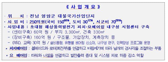Àü³²µµ´Â ½ÃÇè¼¾ÅÍ¿Í Âø°ø ¿¹Á¤ÀÎ ÇØ»ódz·Â ´ë±Ô¸ð ¹ßÀü´ÜÁö¸¦ ¿¬°èÇØ ±âÀÚÀç(ÅÍºó¡¤ºí·¹À̵塤Ÿ¿ö µî)»ê¾÷ ÀüÁֱ⸦ ¾Æ¿ì¸£´Â ±Û·Î¹ú ÇØ»ódz·Â »ýŰè Á¶¼º¿¡ ¼Óµµ¸¦ ³¾ °èȹÀÌ´Ù.