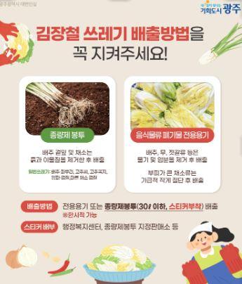ÇѽÃÀûÀ¸·Î Á¾·®Á¦ºÀÅõ¿¡ ¹èÃâµÇ´Â ±èÀå¿ë À½½Ä¹°·ùÆó±â¹°Àº ±¤ÁÖ À½½Ä¹°ÀÚ¿øÈ½Ã¼³¿¡¼ 󸮵Ǹç, ÀÏ¹Ý »ýȰÆó±â¹°°ú´Â º°µµ·Î ºÐ¸® ¼ö°ÅµÈ´Ù.