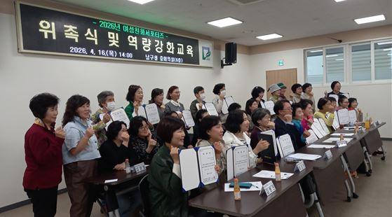 ±¤ÁÖ±¤¿ª½Ã ³²±¸´Â 2026³â 4¿ù 16ÀÏ(¸ñ) ¿ÀÈÄ 2½Ã, ³²±¸Ã» 6Ãþ ÁßȸÀǽǿ¡¼ '2026³â ¿©¼ºÄ£È¼Æ÷ÅÍÁî À§ÃË½Ä ¹× ¿ª·®°È±³À°'À» °³ÃÖÇß´Ù. À̹ø Çà»ç¿¡´Â ¼Æ÷ÅÍÁî À§¿ø 41¸íÀÌ Âü¼®ÇÑ °¡¿îµ¥, ½Å±Ô À§ÃË 8¸í, ÀçÀ§ÃË 10¸í, ±âÁ¸ À§¿ø 23¸íÀ¸·Î ±¸¼ºµÆ´Ù.